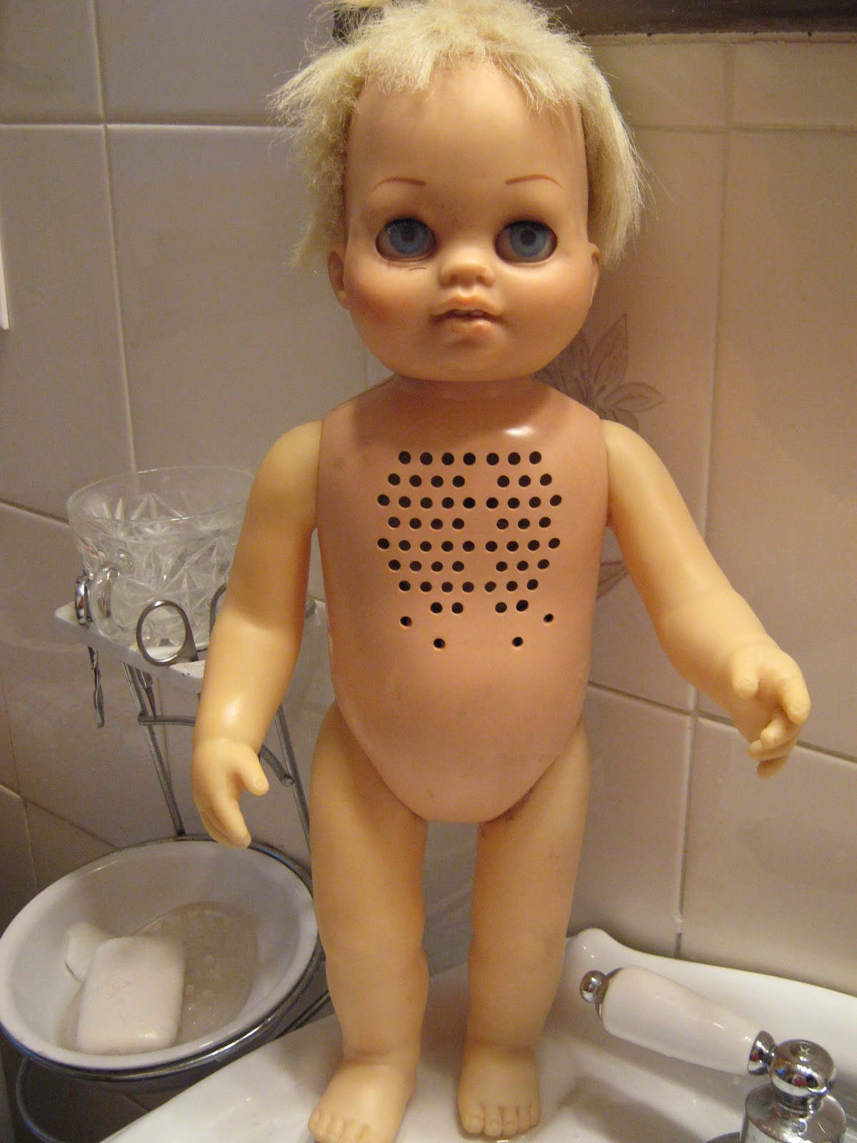 I immediately stripped the dolls bare and set about hand washing all the dresses and outfits. My bathroom looked like a laundry for little people.